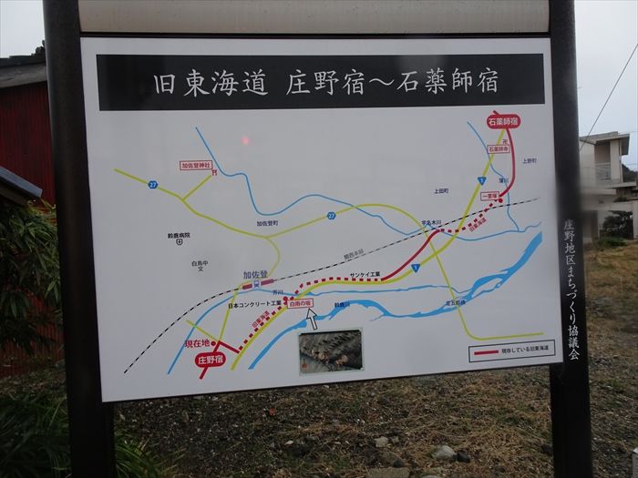 『庄野橋』を渡り国道25号線の歩道橋をさらに渡り、旧東海道の1本鈴鹿川沿いにある
