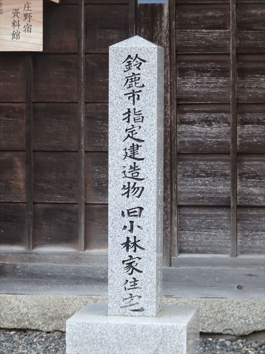 建物前に建つ『鈴鹿市指定建造物旧小林家住宅』碑。