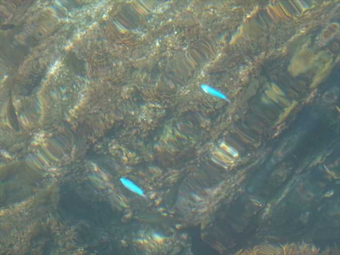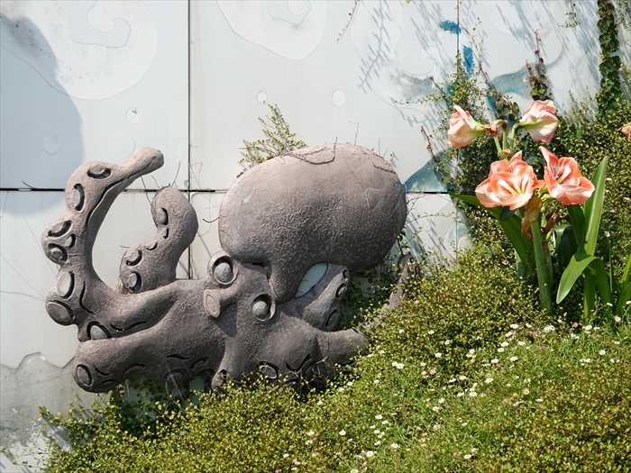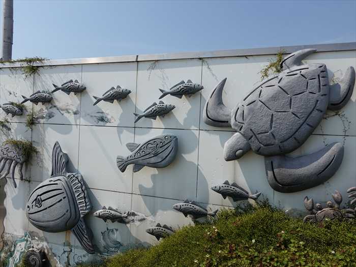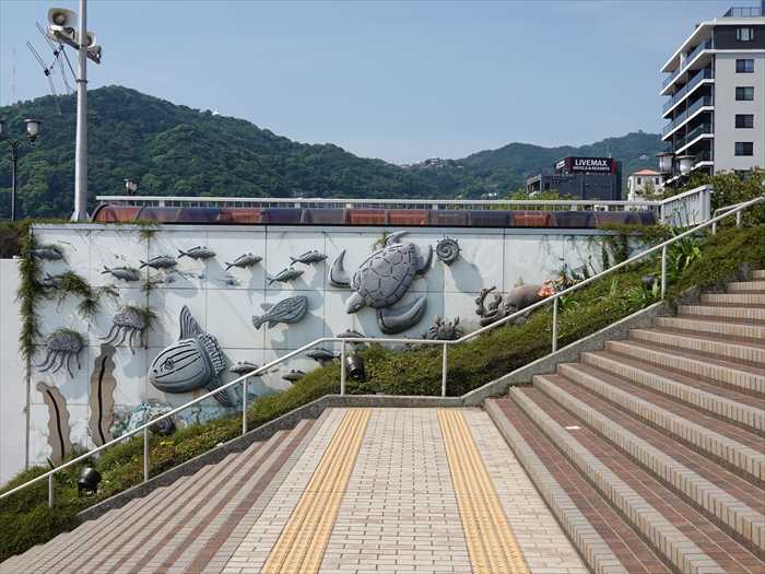横の階段の壁は水族館の如くに多くの魚たちが泳いでいた。