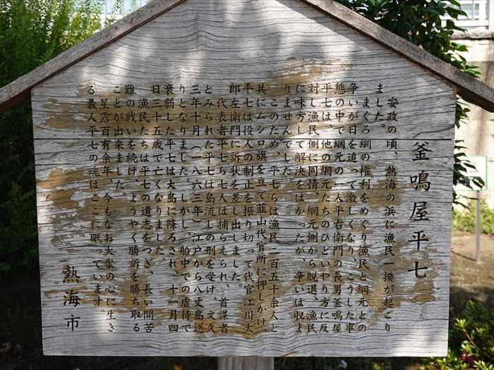 遠島の途中大島で死んだ。人間平七の無私愛人の足跡が熱海の歴史を語っている。