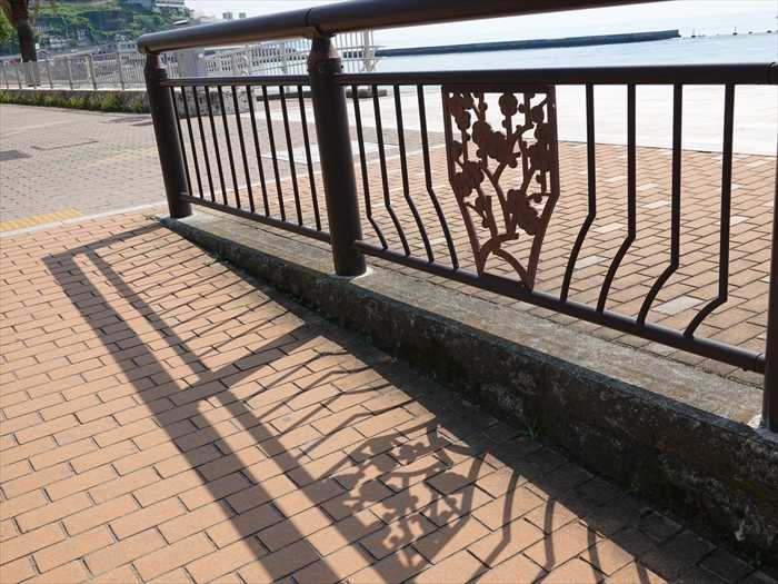 手摺には梅の花のオブジェが、そしてその影が美しかった。