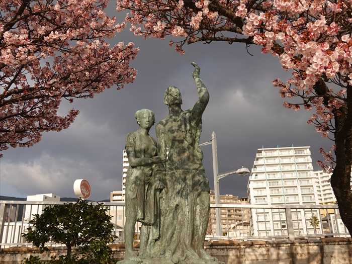 そして「熱海桜」の木の下にあったのが 「釜鳴屋平七夫婦像」。