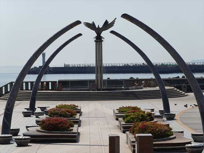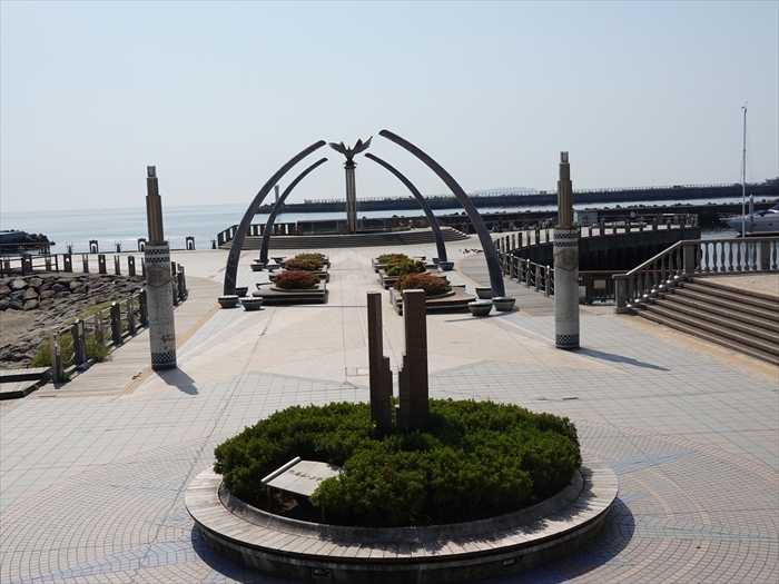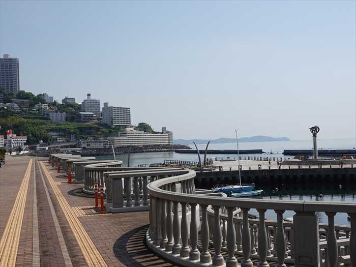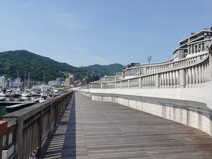 熱海「ムーンテラス」の「恋人の聖地」 のモニュメントに向かって進む。
