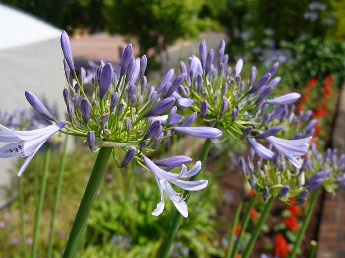 梅雨の時期に花開くアガバンサスは、紫や白など涼しげな色合いで見る人を和ませてくれます。