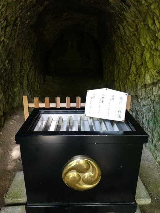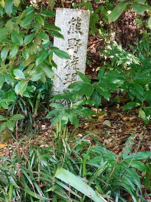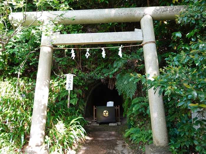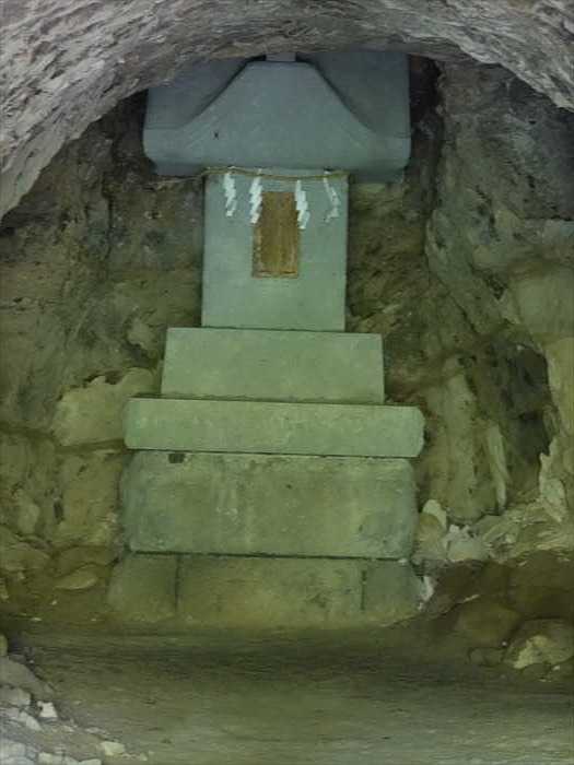 二の石鳥居とその先に 山の洞穴内(やぐら?)に鎮座する「 熊野権現社 」。