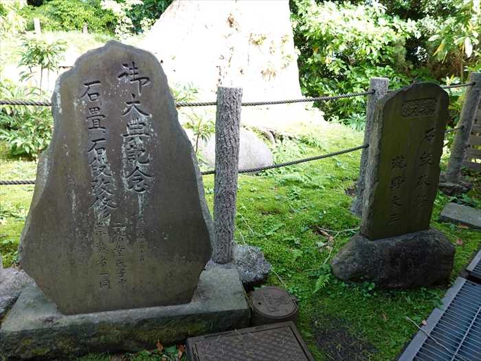 清泉小学校の南西端で、頼朝の墓所から南方200mに建つ石碑。