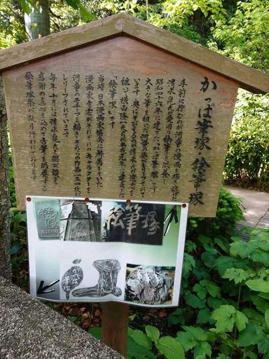 手前に佇むのが、河童の漫画を描き続けた清水昆氏が愛用の絵筆を供養し、昭和46年に建てた