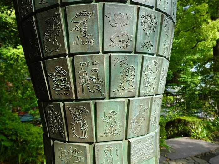 「絵筆塚」は横山隆一がデザインした筆形の塚で、高さ3m、直径1m、重さ800kgの
