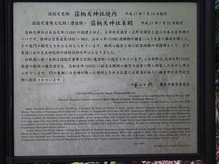 古くは荏柄山天満宮とも称し、福岡の太宰府天満宮、京都の北野天満宮と並び、