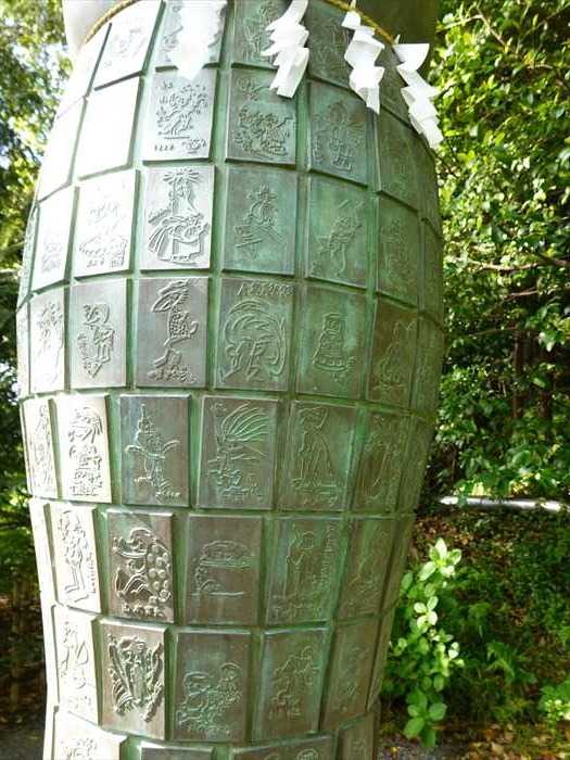「かっぱ筆塚」です。大きな筆を担いだ河童の姿がレリーフされています。