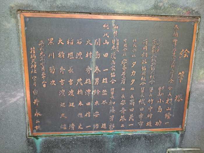 銅製の 絵筆塚建立碑(平成元年10月22日)。