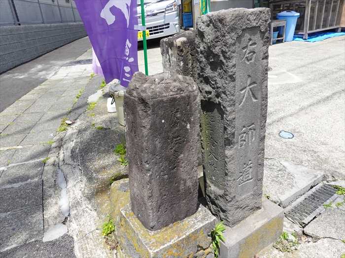 右の石碑にはその名の通り、道標に「右 大師道」と。