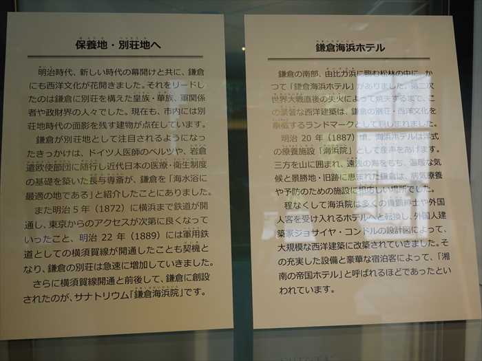 大きなガラス窓に囲まれ、現代の鎌倉の歩みを、パネル展示を中心に紹介していた。