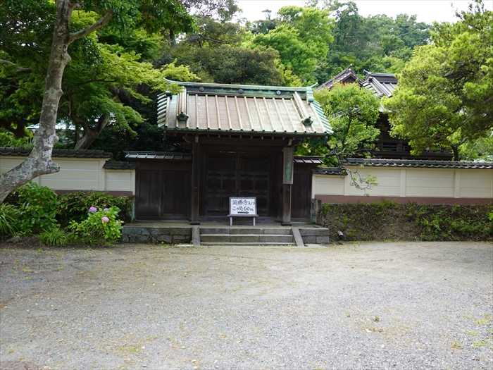 こちらの「総門」前には「英勝寺入口はこの先60m➡」と記入された案内板が。