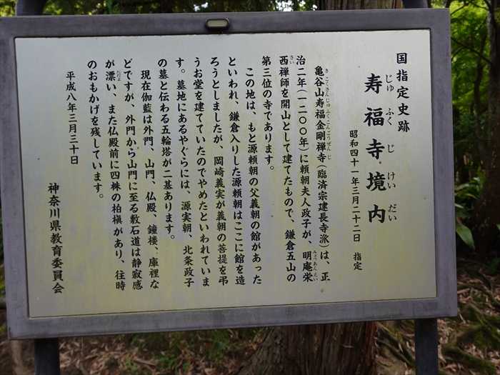「国指定史跡 寿福寺境内  昭和四十一年三月二十ニ日 指定