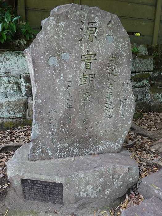 生誕八百年記念の「源 實朝をしのぶ」と刻まれた源 実朝 顕彰碑。