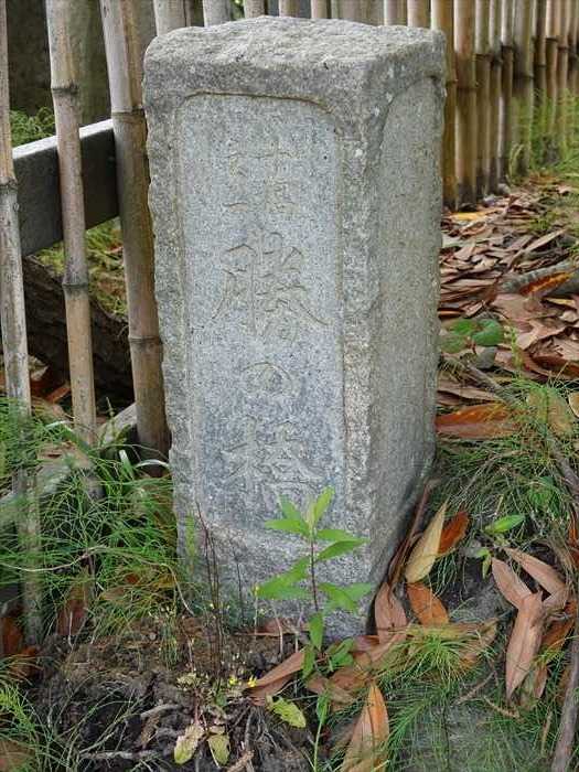 「勝の橋」といっても、橋らしきものは?。よく見ると道路の脇の石塔の中に、
