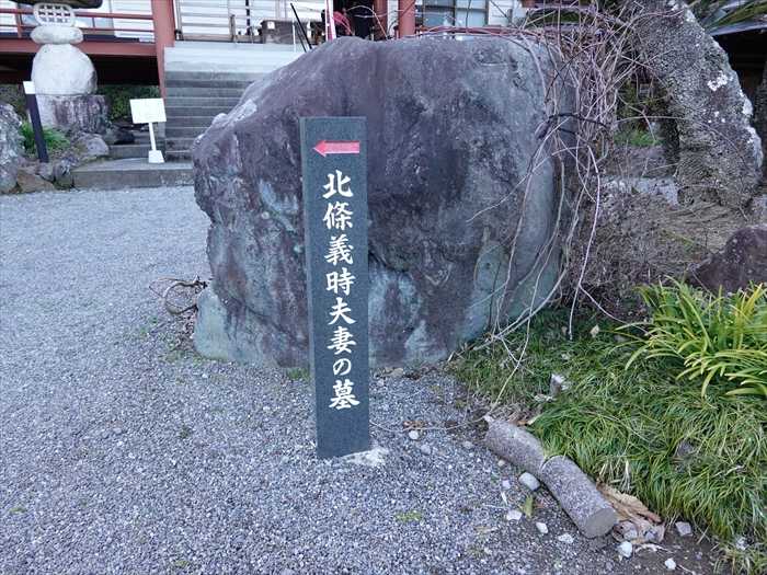 長子泰時らは、北条氏発祥の地にあるこの寺に墓を建て追善の碑とした。