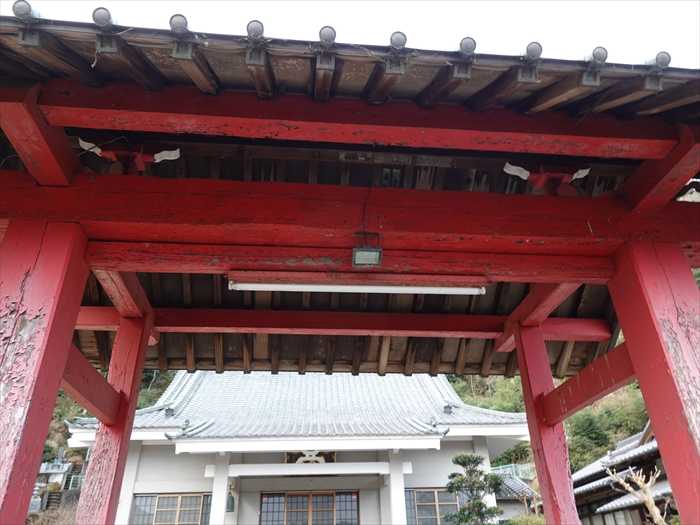 朱に塗られた山門を潜る。
