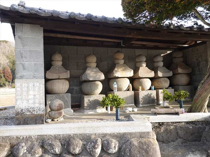 尚、現在ある五輪塔及び塚は、昭和三十三年の狩野川台風により流失、或は散乱したが牧之郷の