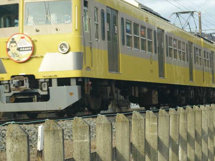 墓の前を「伊豆箱根鉄道駿豆線」が通過。