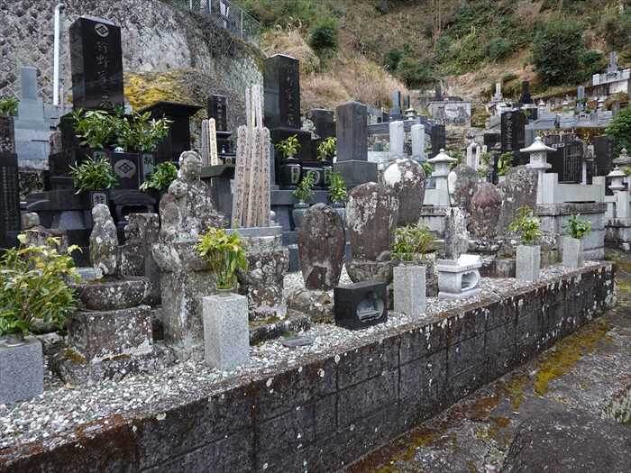 現在、ここ牧之郷に並んでいる五輪塔は、1958年(昭和33年)の狩野川台風によって流され、