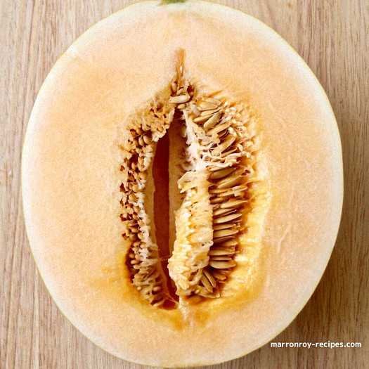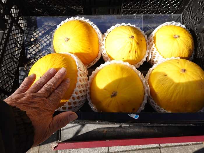 表面が明るい黄色で網目状の模様がない、一風変わったビジュアルのメロン。