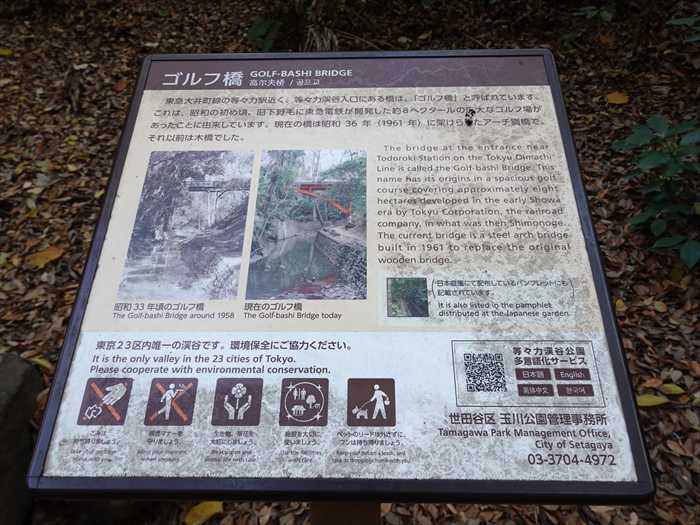 東急大井町線の等々カ駅近く、等々カ渓谷入口にある橋は、「ゴルフ橋」と呼ばれています。