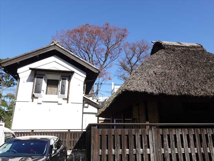 「成城石井等々力店」の駐車場の隅にあった茅葺き屋根の古民家。
