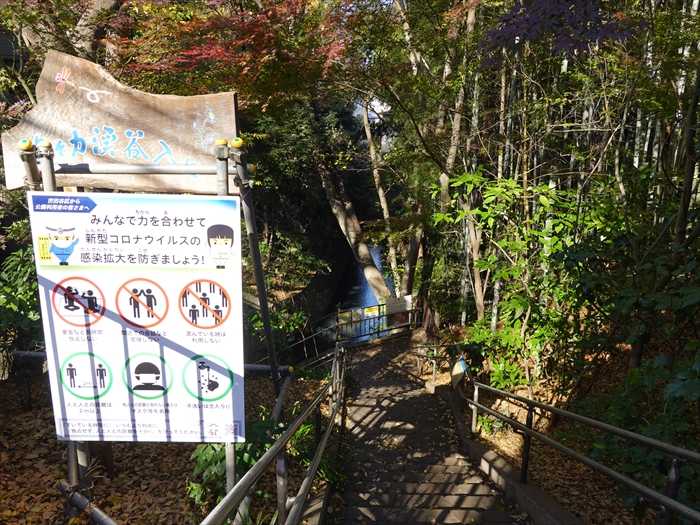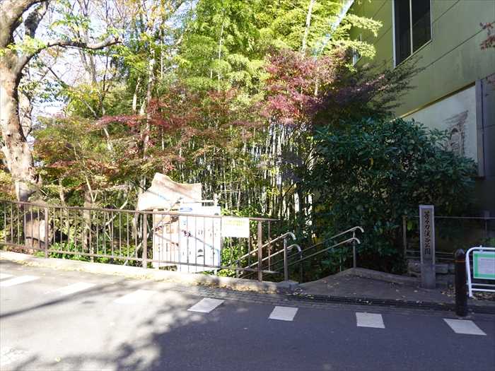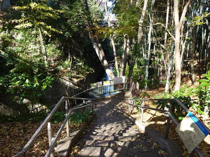 「等々力渓谷公園入口」の看板と反対側には階段があった。