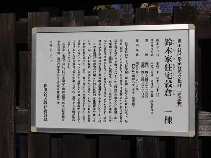 世田谷区の有形文化財に指定されている 鈴木家住宅穀倉 」。