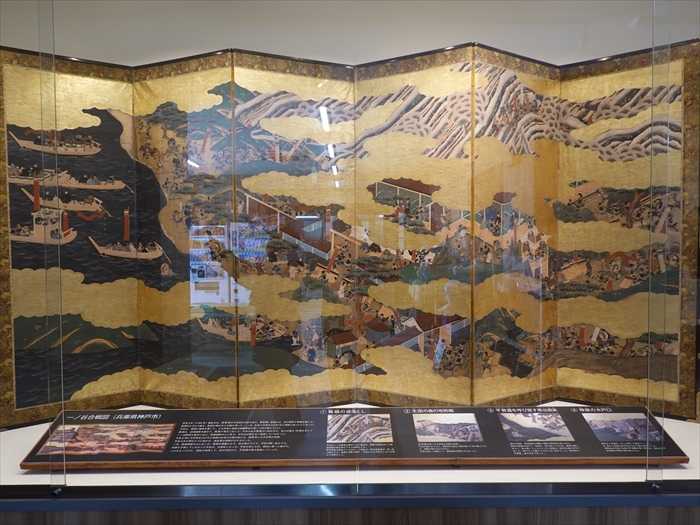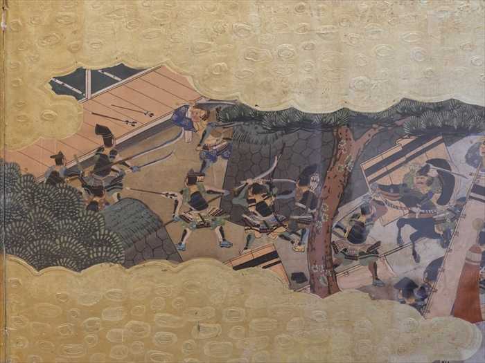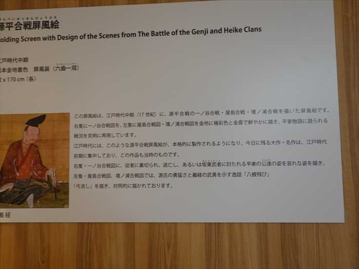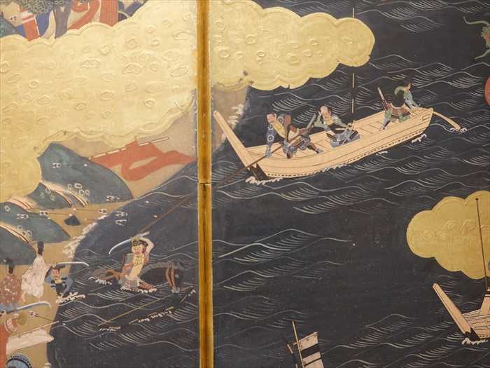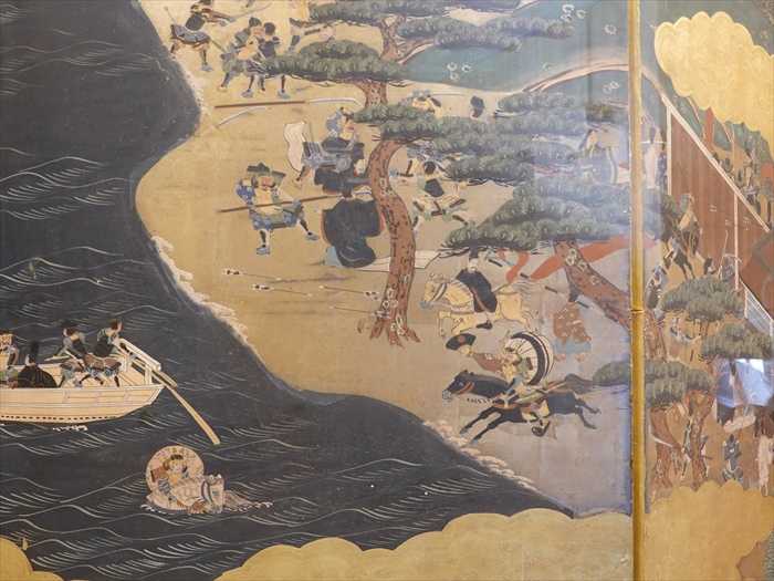 この屏風絵は、江戸時代中期(17世紀)に、源平合戦の一ノ谷合戦・屋島合戦・壇ノ浦合戦を