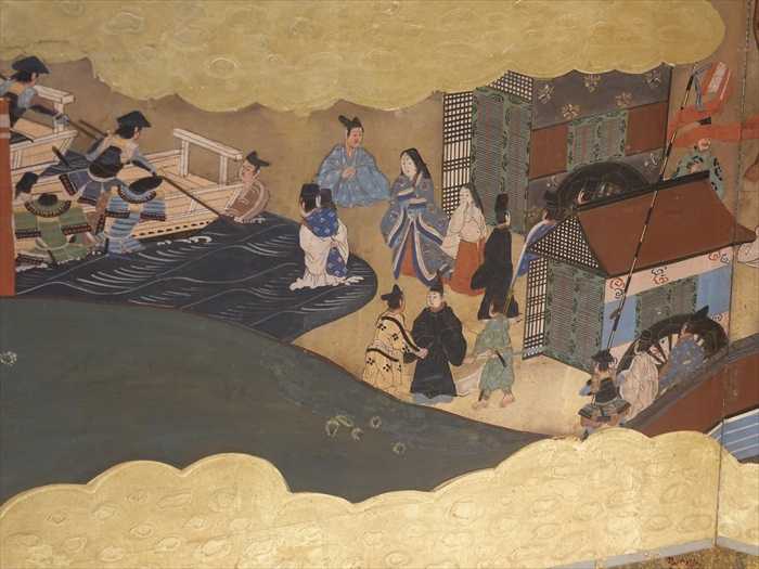 束帯姿の平家の公達や平清盛の妻ニ位尼姿、安徳天皇の生母建礼門院の姿が見られる。