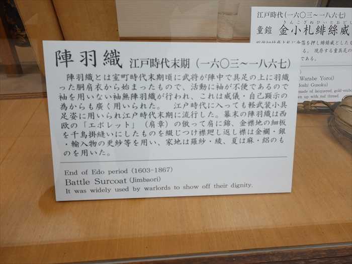 幕未の陣羽織は西欧の「エポレット」(肩章)の倣って肩に錦、金襟地の細板を千鳥掛縫いに