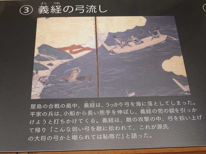 義経は、敵の攻撃の中、弓を拾い上げて帰り「こんな弱い弓を敵に拾われて、これが源氏の