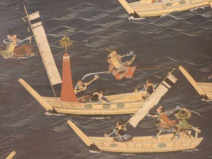江戸時代には、このような源平合戦屏風絵が、本格的に製作されるようになリ、今日に残る大作・