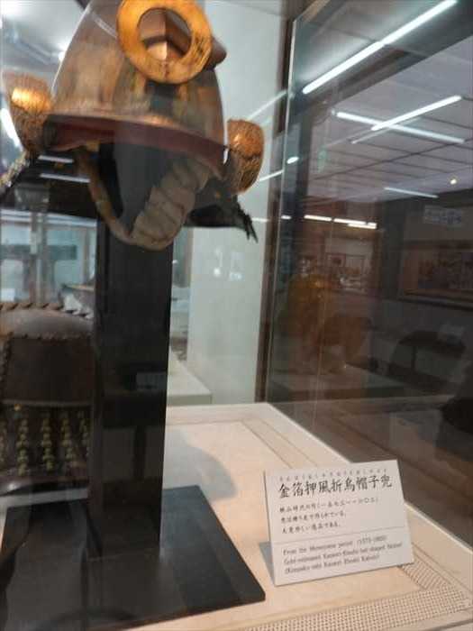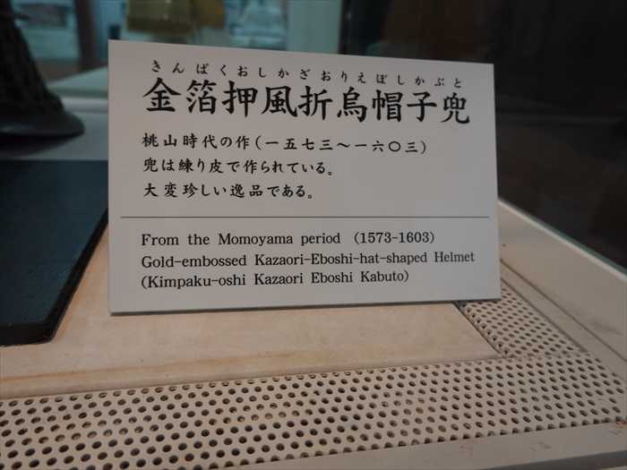 金箔押風折烏帽子兜(きんぱくおしかざおりえぼしかぶと)