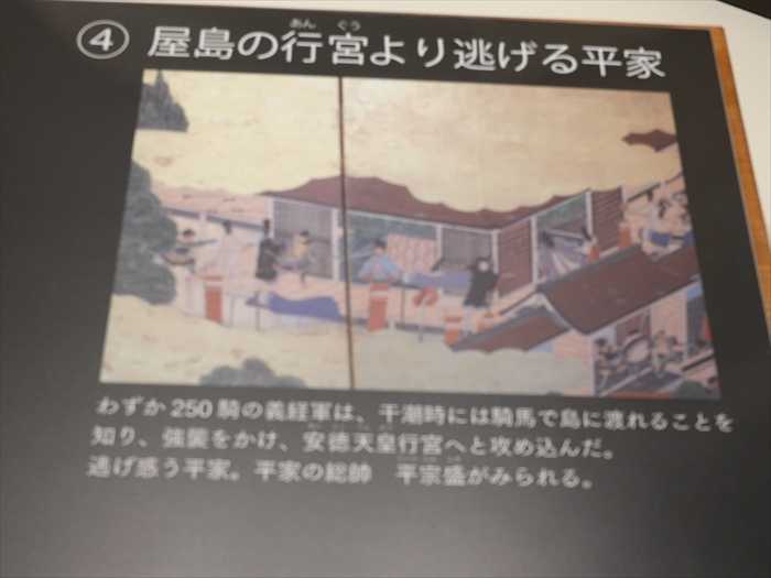わずか250騎の義経軍は、干潮時には騎馬で島に渡れることを知り、強襲をかけ、安徳天皇