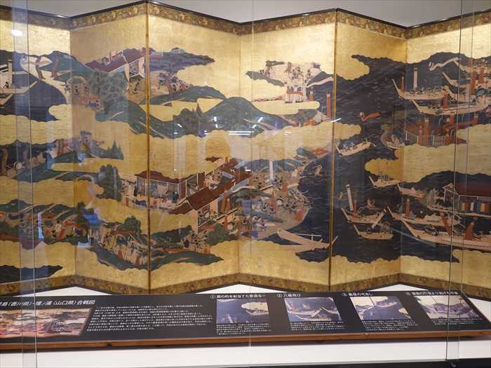屋島(香川県)・壇ノ浦(山口県)合戦図屏風 」。