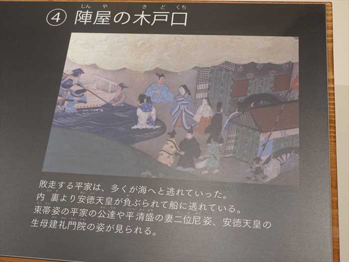 負ぶられて船に逃れる安徳天皇の姿が。