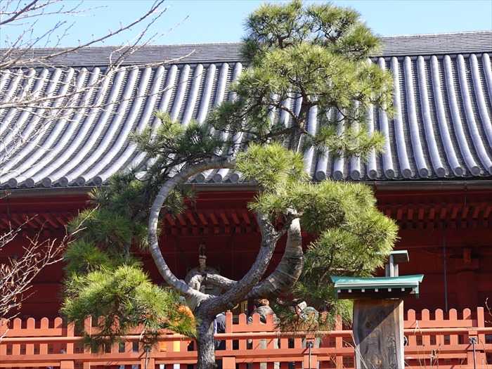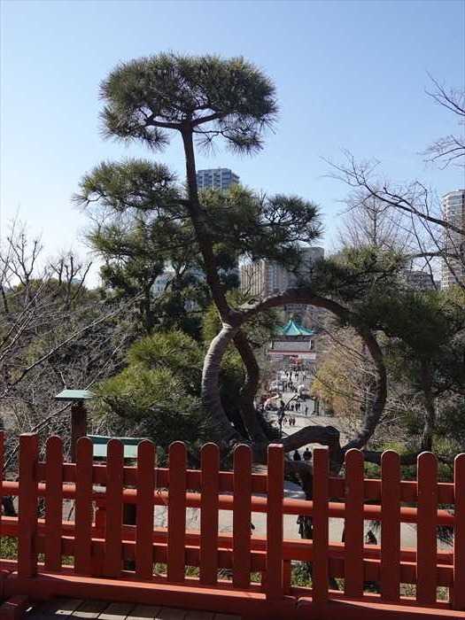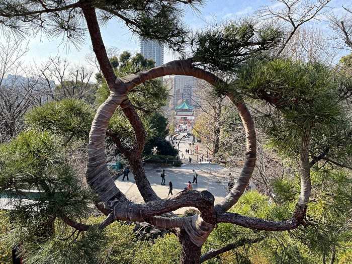 独特の枝ぶりが特徴の「月の松」。江戸時代から庶民に親しまれており、江戸の名所を描いた