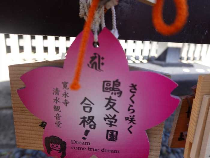 合格祈願の絵馬には「桜咲く」の「秋色桜」の花弁の形が。