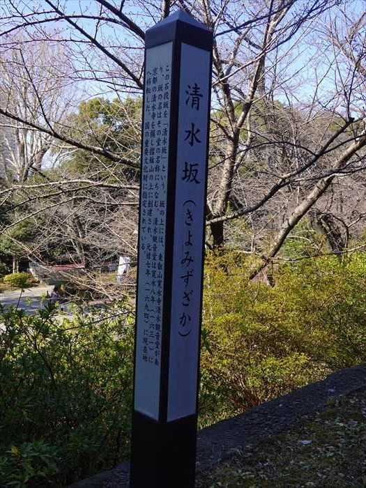 この石段坂を「清水坂」という。坂の上には、東叡山寛永寺清水観音堂があり、坂の名は