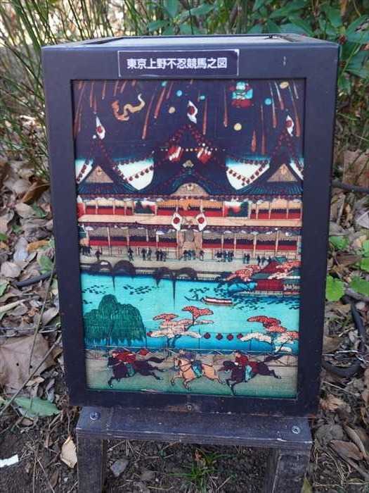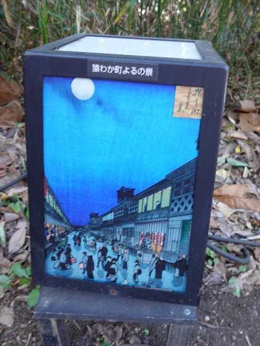 更に不忍池に向かって進むと道路脇には「 浮世絵行燈 」が設置されていた。。