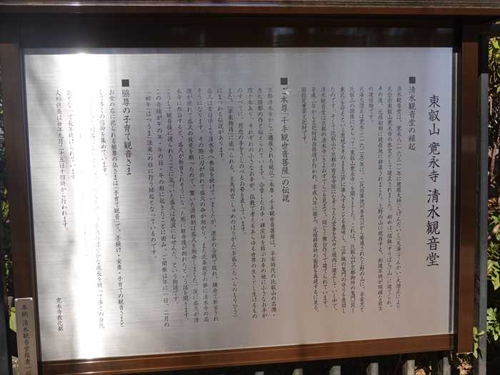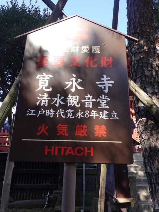 重要文化財 寛永寺 清水観音堂 江戸時代寛永8年建立 」。