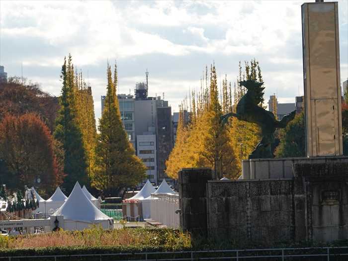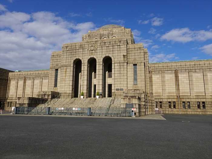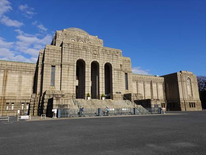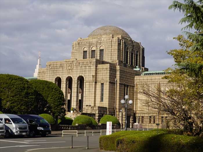 東側に日本画、西側に洋画を展示しております。中央大広間天井ドームは、最高部で床上27.5m、