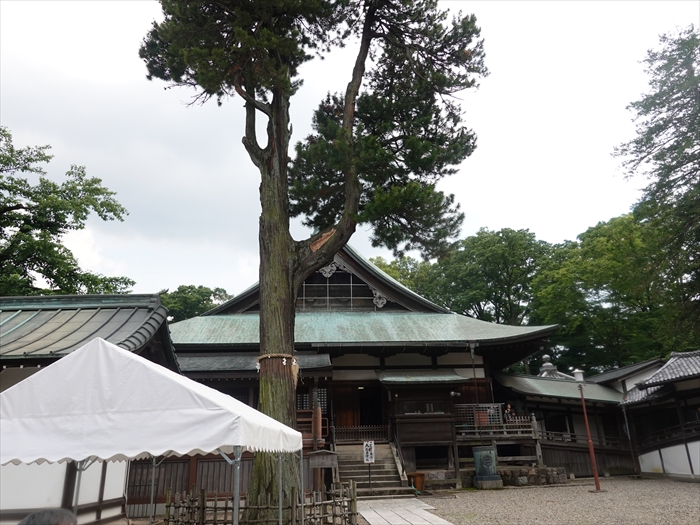 手前に「 御神木 天海僧正 お手植 槇 」。