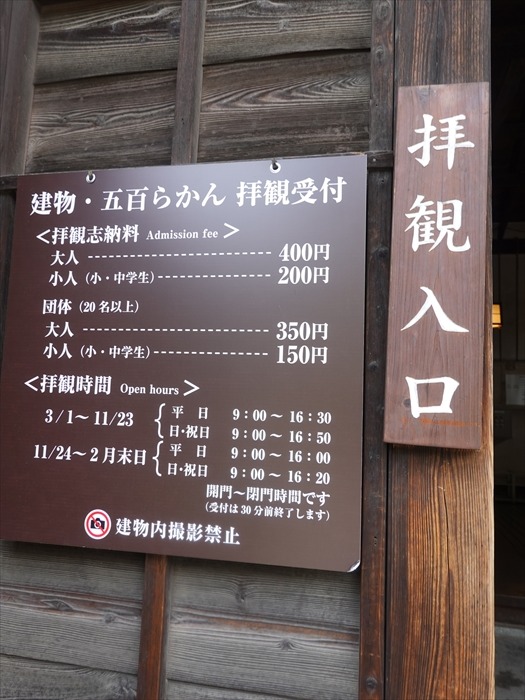 門の隙間から「五百羅漢像」を見る。帰路には内部に入り「五百羅漢像」を間近に