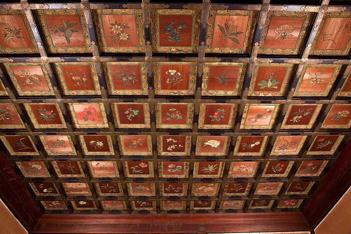 墨絵の山水が描かれています。また、天井には彩色による81枚の花模様があります。