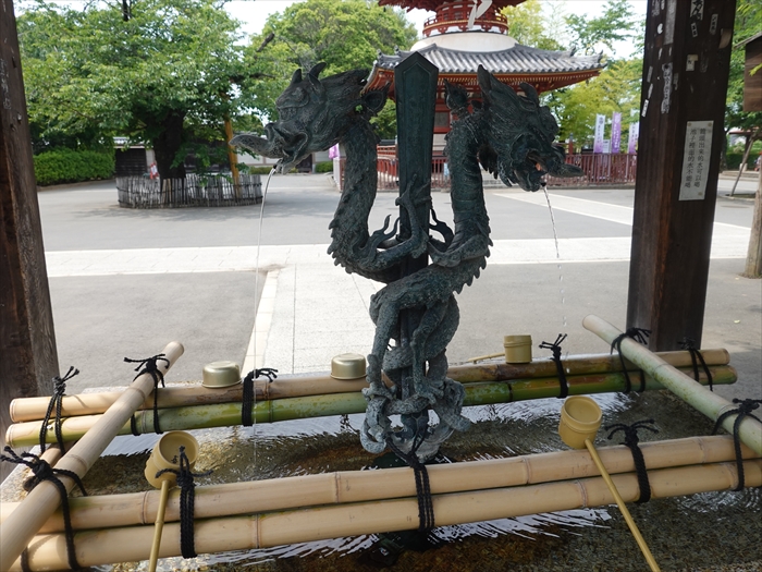 さすが、不動明王をご本尊に祀っている寺。両方の龍の口から水が出ていた。